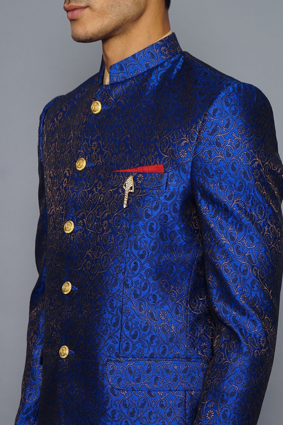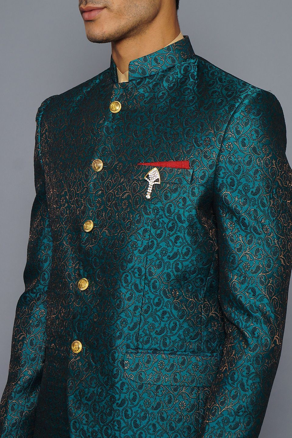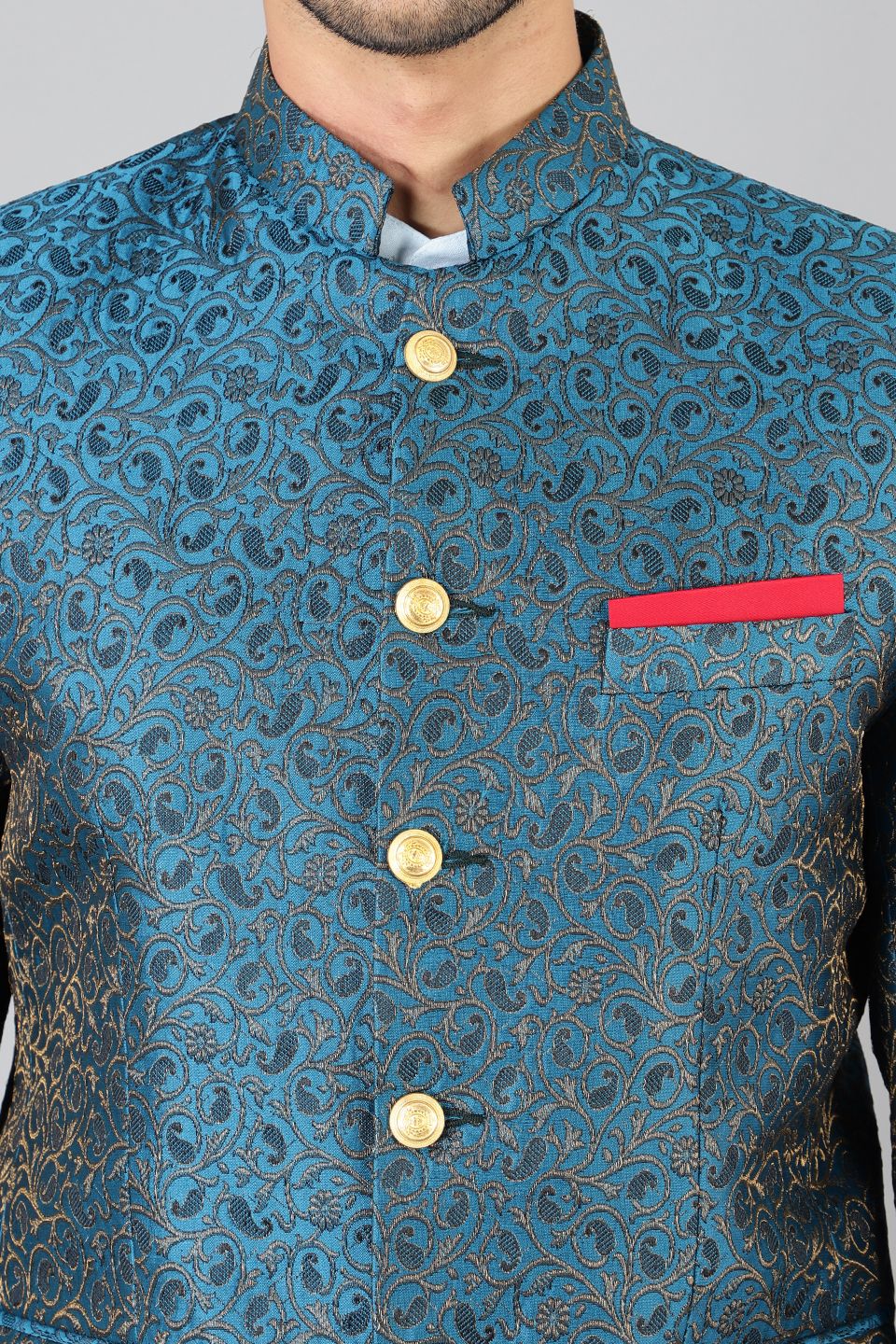 Wintage Men's Banarasi Rayon Cotton Casual and Festive Indian Jodhpuri Grandad Bandhgala Blazer : Green